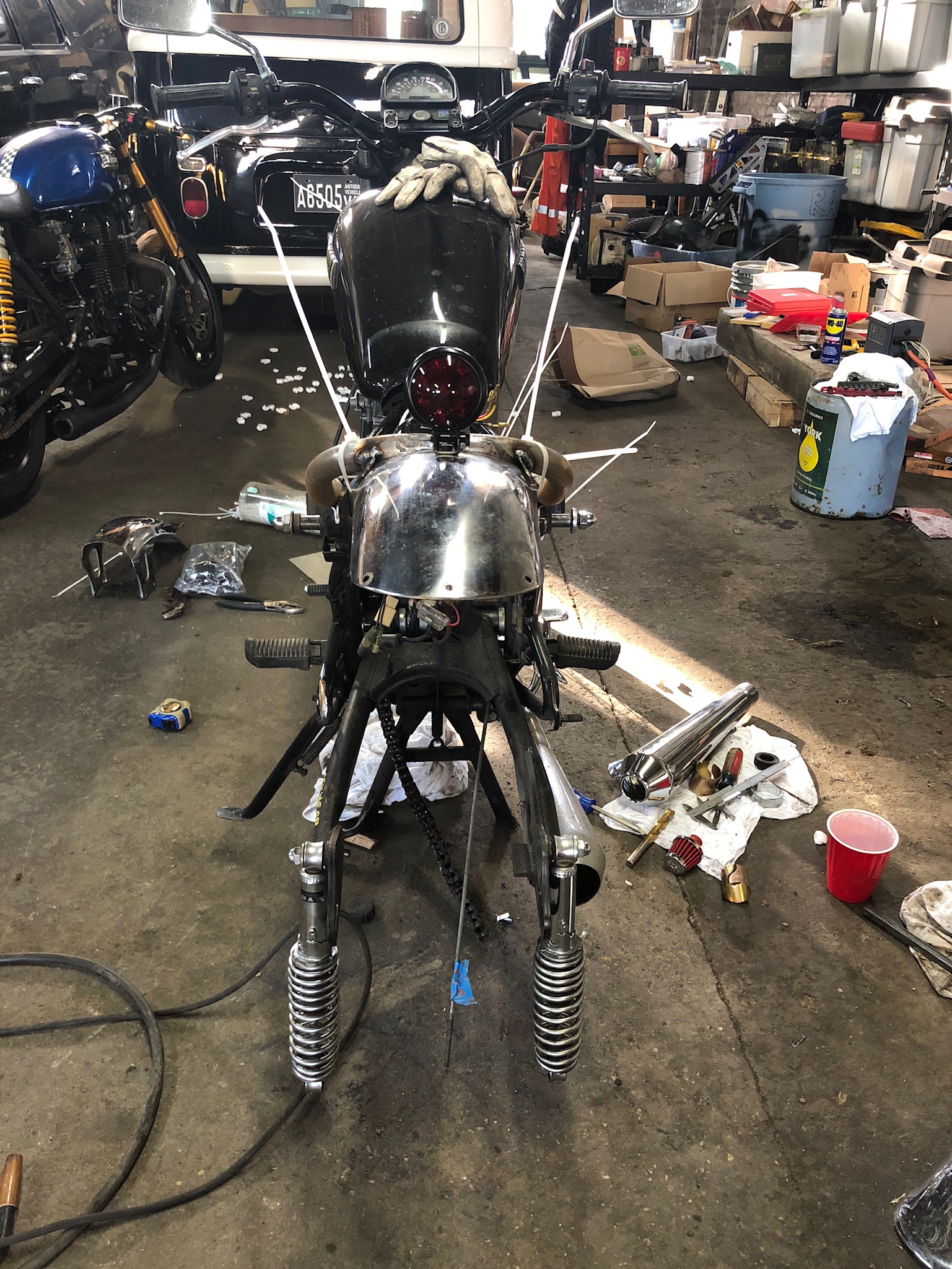 Custom motorcycles, garage art, and automotive work