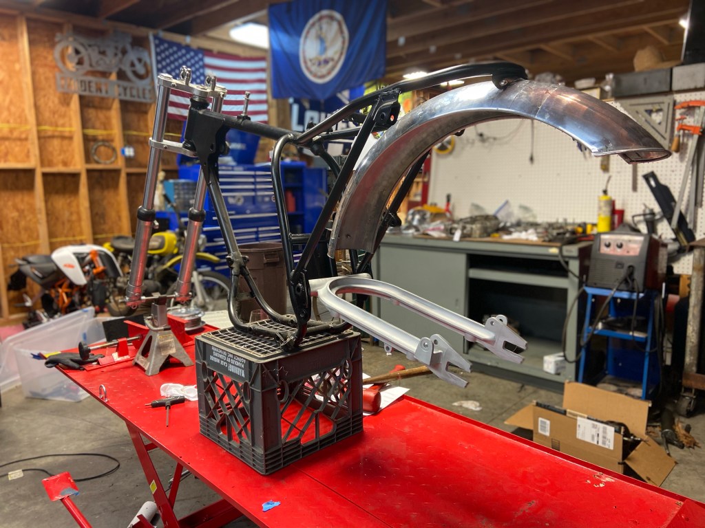 With the RZ350 off to paint. The BSA is up on the lift getting worked on. One of the problems that was always going to have to get sorted was the original stock swingarm was bent. This apparently is a common problem with these bikes. Top on the list to replace the stock swingarm was the A&A swingarm. For AHRMA racing, its the only acceptable replacement and upgrade. However, these things are impossible to find. I had just about resorted to building my own swingarm when one came up on eBay.